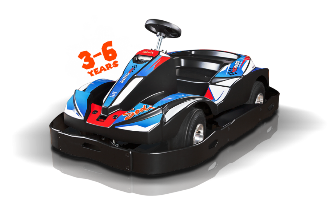 The latest Kid kart designed by the Sodikart engineers. Children can now pretend to be a racing driver like Mum and Dad before they can even ride a bike! Behind the wheel of a real 100% electric, non-polluting kart, budding drivers from 3 to 6 years old can now race their friends or learn basic driving skills, just like a grown-up!