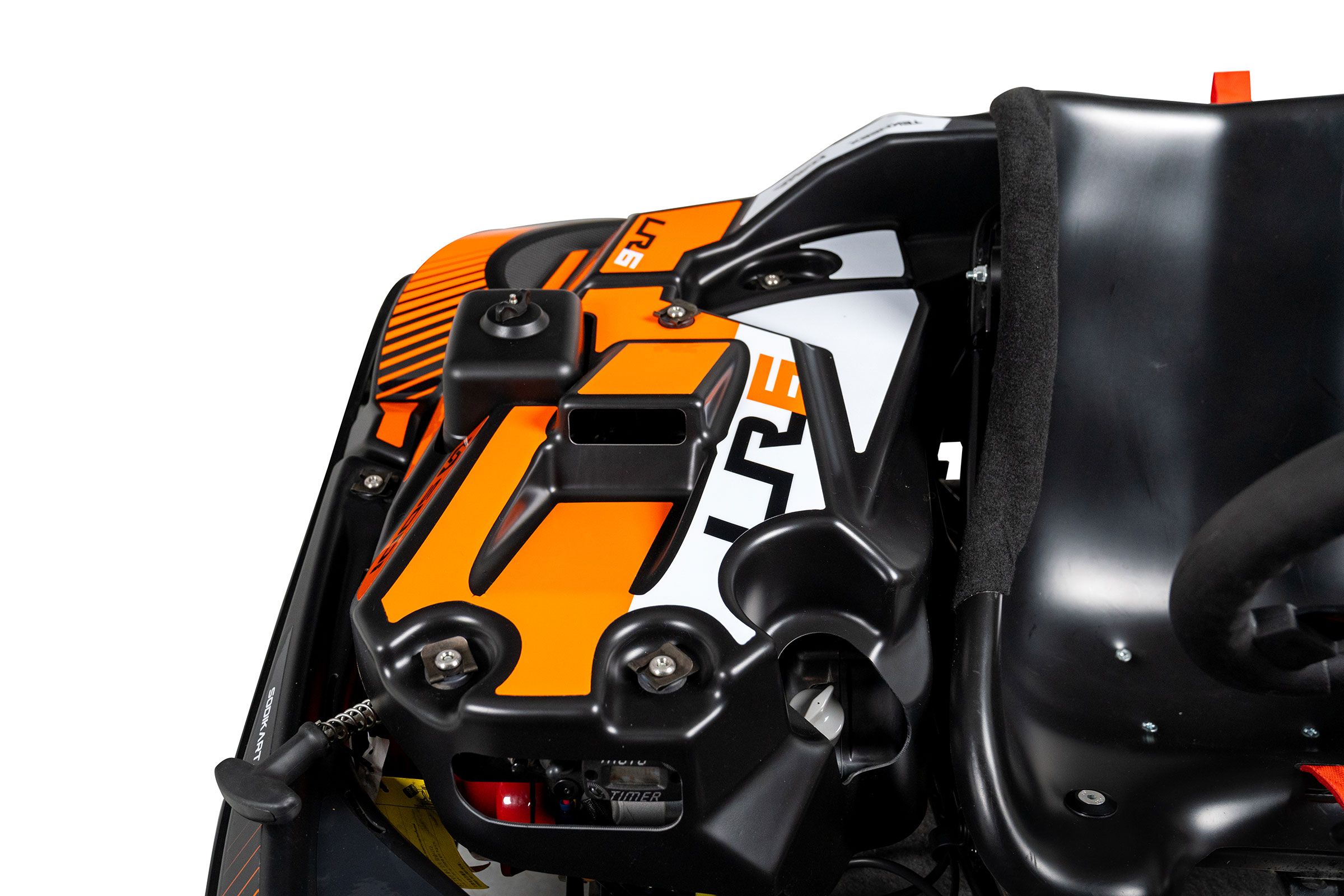 Integral rear bodywork element specially designed to cover the hot and rotating parts on the rear of the kart...