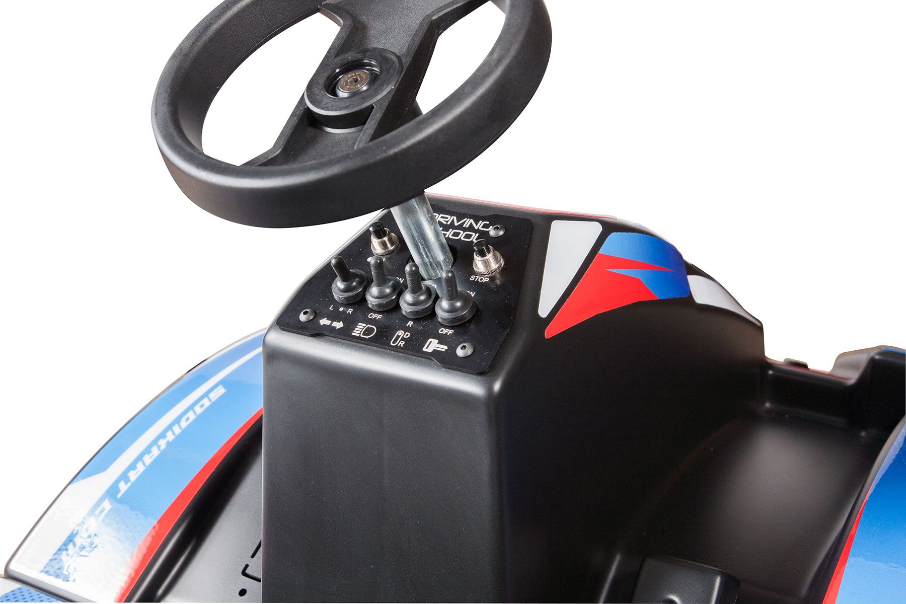 The latest Kid kart designed by the Sodikart engineers. Children can now pretend to be a racing driver like Mum and Dad before they can even ride a bike! Behind the wheel of a real 100% electric, non-polluting kart, budding drivers from 3 to 6 years old can now race their friends or learn basic driving skills, just like a grown-up!